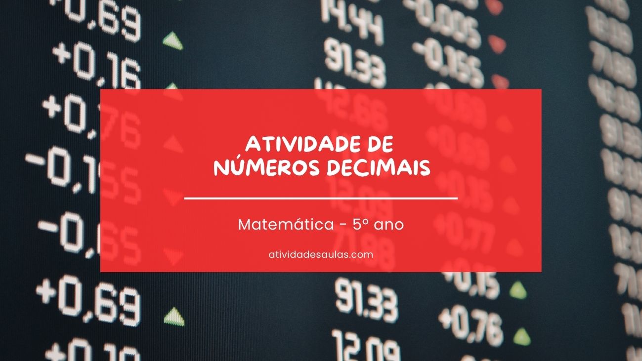 Atividade sobre números decimais para o 5º ano, com situações-problema, comparação, reta numérica e operações, com gabarito e BNCC.