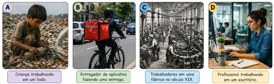Nesta atividade, os estudantes irão analisar imagens, interpretar situações reais, refletir sobre direitos trabalhistas e desenvolver pensamento crítico. As questões incentivam a argumentação, a comparação entre contextos históricos e atuais e a construção de opiniões fundamentadas.