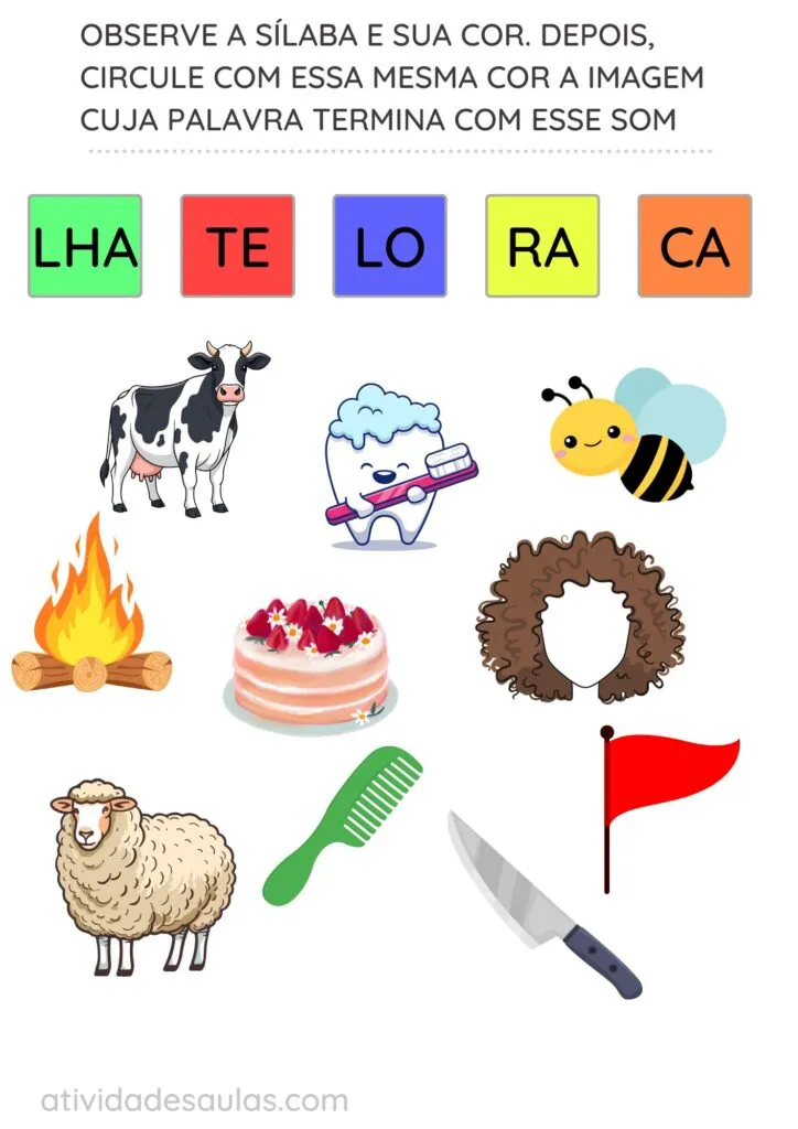 Além de divertida, essa tarefa contribui diretamente para o avanço na consciência fonêmica, um passo fundamental na alfabetização. O uso das cores e das imagens facilita a memorização e torna o aprendizado mais visual e atrativo.