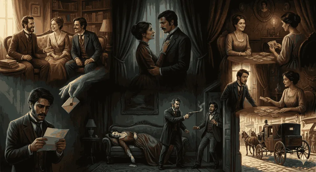 Base para o professor: O suspense é construído pelas cartas anônimas, pelo bilhete urgente e pela consulta à cartomante.