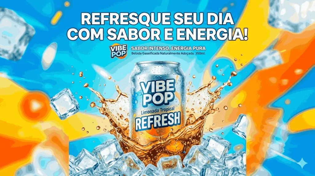 c) Palavras como “refresque”, “sabor” e “energia”, que destacam qualidades positivas e despertam interesse no consumidor.