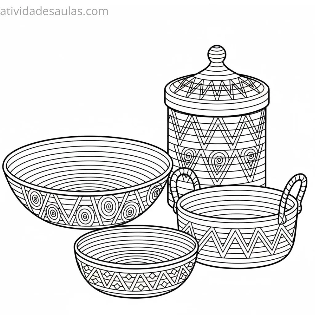 A arte de trançar cestos e tigelas é uma tradição passada de geração em geração. Esses objetos, feitos à mão, mostram o cuidado, a paciência e a criatividade dos povos africanos, além de simbolizar união e partilha nas comunidades.